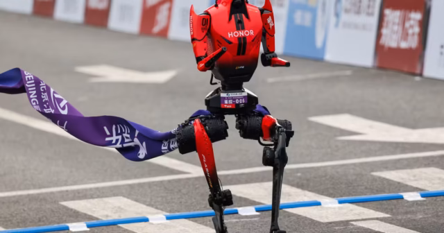 O correspondente em Pequim do jornal espanhol O país diz que o primeiro robô humanoide a cruzar a linha de chegada, em 48 minutos e 19 segundos, se chama “Shandian” (“Thunderbolt”, em mandarim). Mas já que é “controlado remotamente, foi penalizado em comparação com robôs autônomos”, incluindo o grande vencedor do dia, Lightning, desenvolvido pela empresa Honor, “um gigante especializado em eletroeletrônicos e telefonia móvel”, especifica o progressivo diário.