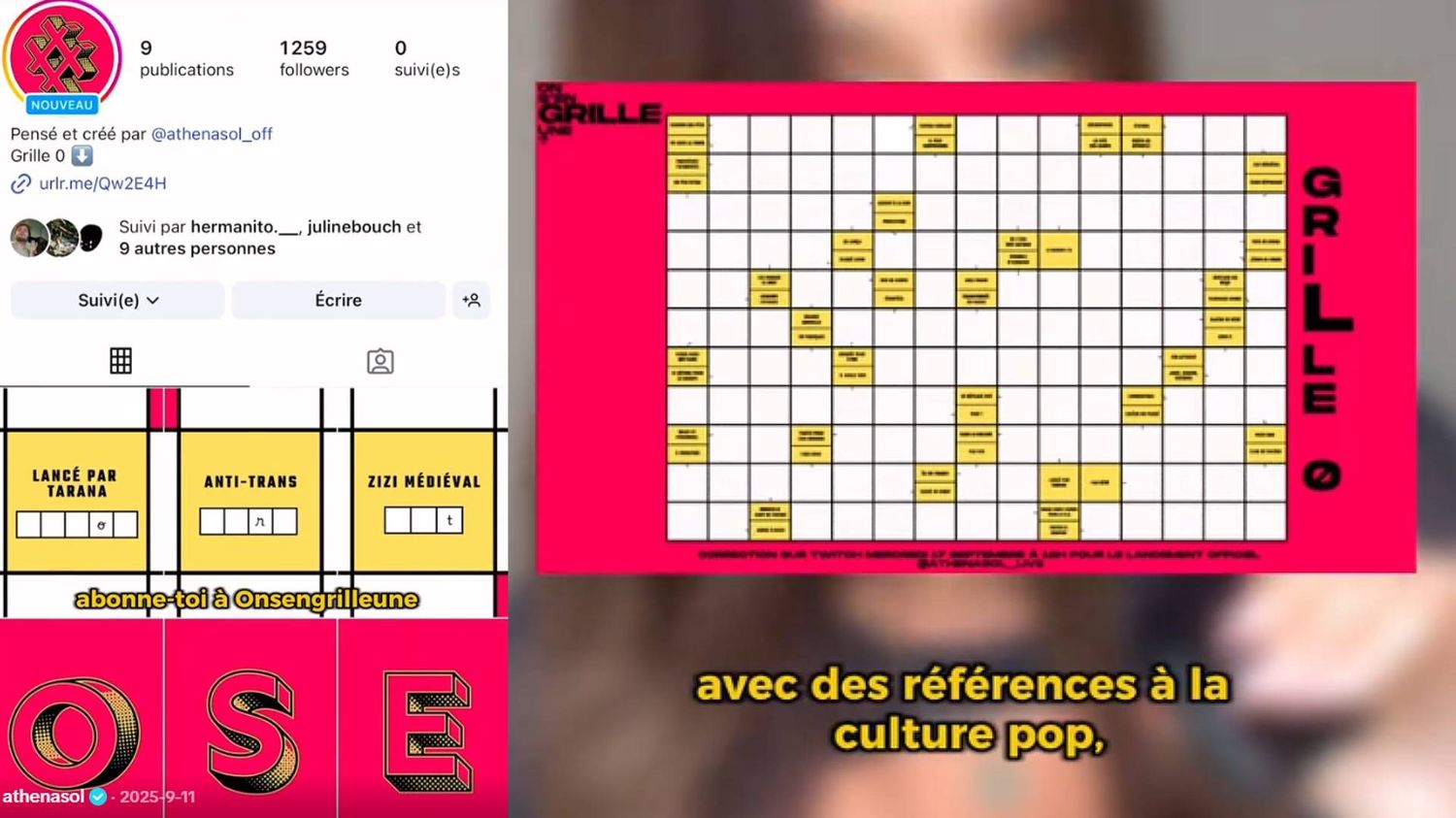 Athena Soule, especialista em literatura moderna e criadora de conteúdo, e que tem mais de um milhão de assinantes no TikTok, oferece uma grade gratuita todas as semanas em seu site “On s’en grille une”. Todas as quartas-feiras, ele revela soluções ao vivo no Twitch.