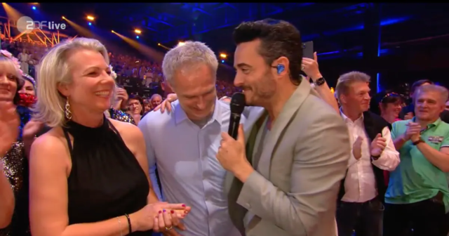 “Eu conheço esse cara”, disse Zarrella enquanto apertava a mão de Christian Wück. “Este é o técnico da seleção nacional de futebol feminino. Christian Wück está aqui”, diz ele alegremente. “Olá. Olá, Göttingen”, ele cumprimenta o público que aplaude. “Christian, o que você está fazendo conosco?” pergunta Giovanni Zarrella, completamente surpreso.