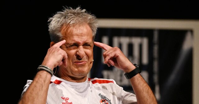 Pierre Littbarski durante sua peça “Litti faz teatro”. IMAGO/Jan Huebner