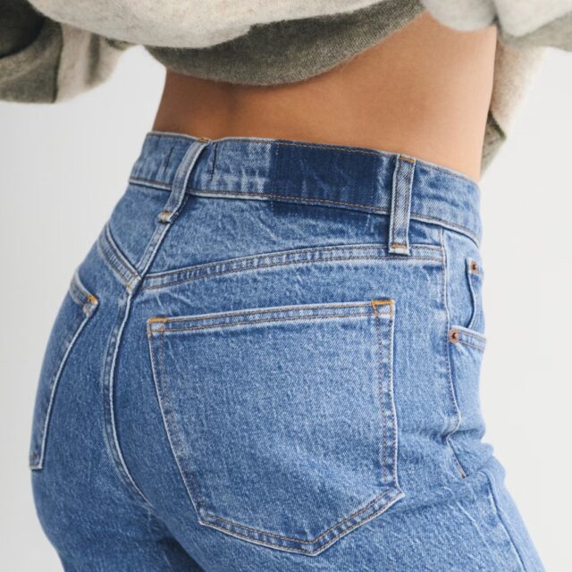 A construção secreta desmorona. O jeans com elasticidade, muitas vezes misturado com spandex, ajuda a contornar o corpo enquanto mantém sua forma o dia todo. Os bolsos traseiros também desempenham um papel importante: os fullers curtos e altos com um ligeiro ângulo para cima podem criar a ilusão de uma aparência elevada.