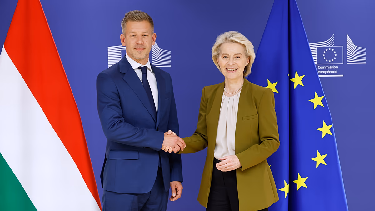 Peter Magyar reuniu-se com a presidente da Comissão Europeia, Ursula von der Leyen, nas suas primeiras conversações diretas desde a sua vitória eleitoral em 12 de abril. Discutiram medidas para desbloquear milhares de milhões de euros em fundos da UE devido a preocupações com a corrupção e o Estado de direito.