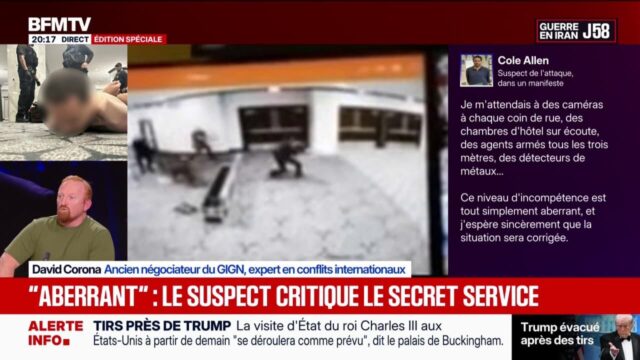 Home Notícias Tiros disparados perto de Donald Trump: ‘Ainda temos o presidente mais assassinado’,... Notícias Tiros disparados perto de Donald Trump: ‘Ainda temos o presidente mais assassinado’, observa David Corona, ex-negociador do GIGN By Catarina Alves - 26 abril 2026 9 0 FacebookTwitterPinterestWhatsApp Tiros disparados perto de Donald Trump: ‘Ainda temos o presidente mais assassinado’, observa David Corona, ex-negociador do GIGN No mesmo assunto 1:20 Tiroteio no jantar dos correspondentes da Casa Branca: o presidente Ronald Reagan foi atacado no mesmo hotel 3:12 Tiroteio perto de Donald Trump: Esta tentativa de assassinato “faz parte do contexto de radicalização da sociedade americana”, afirma Bruno Tertre, vice-diretor da Fundação de Estudos Estratégicos 7:48 LINHA VERMELHA – Tiroteio de gala em Washington: Trump é alvo novamente 2:29 Imagens perto de Donald Trump: em suas redes sociais, o presidente americano “exige a construção de um salão de baile grande, seguro e confiável nos terrenos da Casa Branca” 3:32 Tiroteio no jantar dos correspondentes na Casa Branca: descoberta de violação de segurança? leitura Tiros disparados perto de Donald Trump: ‘Ainda temos o presidente mais assassinado’, observa David Corona, ex-negociador do GIGN 14h30 Tiroteio perto de Donald Trump: elementos perturbadores do manifesto do agressor 1:16 Tiros disparados perto de Donald Trump: O presidente dos EUA “sempre olhou para cima, está em seu temperamento”, diz Nicholas Conker, fundador do Western Arc, um think tank transatlântico conservador 4:08 Tiro perto de Donald Trump: “O ataque armado ao presidente dos EUA na noite passada é inaceitável”, diz Emmanuel Macron 2:17 Tiroteio perto de Donald Trump: equipes da BFMTV estão em frente à casa do agressor 2:24 Imagens de Donald Trump: “O trabalho do Presidente dos Estados Unidos é sem dúvida o trabalho mais perigoso do mundo”, explica Pascal Bito-Panelli, ex-comandante do Serviço de Proteção VIP 3:46 Tiros perto de Donald Trump: relatório minuto a minuto da noite 2:14 SCOUTS – Donald Trump foi baleado 4 vezes em 10 anos 3:31 Tiro no jantar dos correspondentes da Casa Branca: O agressor “tinha muito ódio no coração” por Donald Trump Fonte