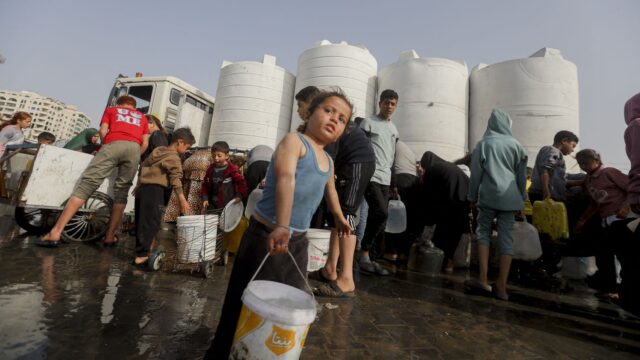 Há três anos que Wala vive numa das tendas brancas montadas entre edifícios num dos campos de deslocados em Deir al-Balah, uma cidade no centro do enclave de Dina. Para armazenar água, ela utiliza quatro latas de tinta de 15 litros. O abastecimento é um grande problema, com Gaza a sofrer de escassez. “É muita dor, leva muito tempo, ela diz. Passamos horas esperando na fila. E às vezes, não importa quanto tempo esperemos, não há água.”