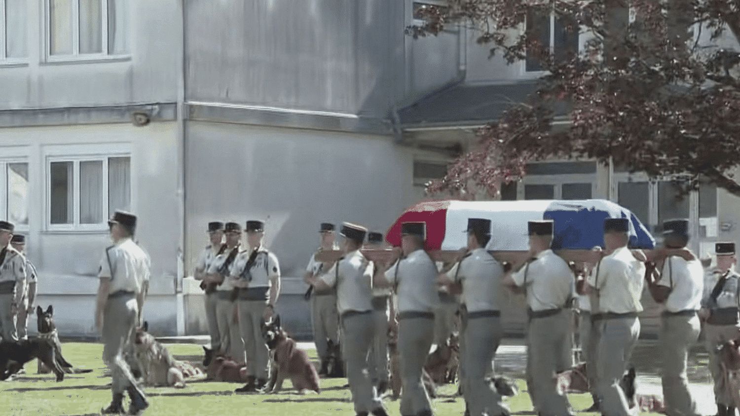 O cortejo fúnebre foi recebido por seus irmãos do 132º Regimento de Infantaria Sino-Técnico de Swapes (Marne). Aqui estáAnnette GerardinO garoto local, junto com seu leal pastor alemão Ros, é especialista em ajudar a encontrar e detectar explosivos. Promovido postumamente, o Mestre Cabo recebeu diversas premiações, entre elas a Legião de Honra.